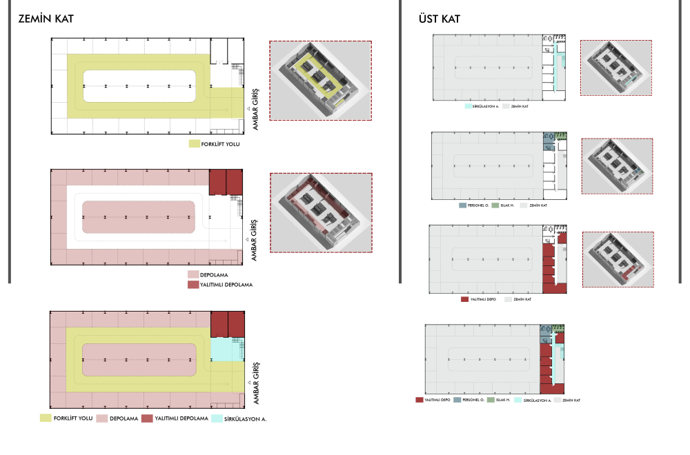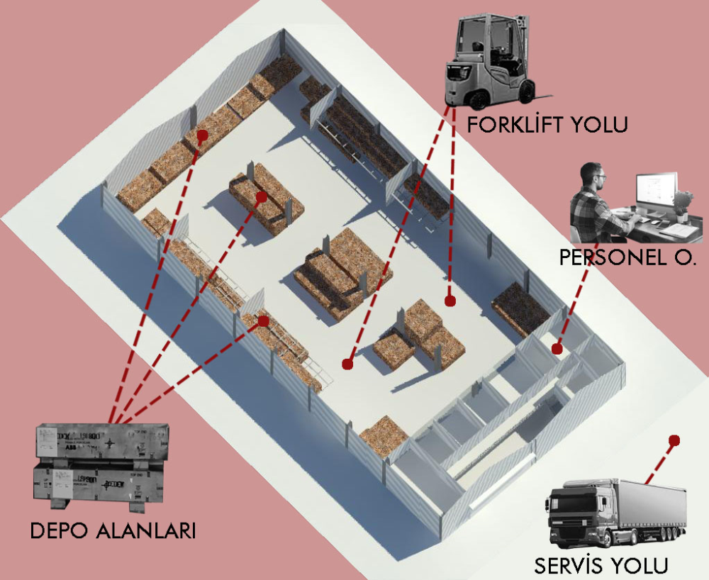 3- Depolama alanları olmak üzere 3 farklı yapı tasarlanmıştır.